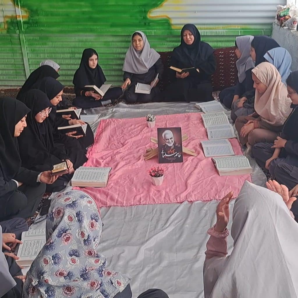 محفل انس با قرآن در دبستان حضرت معصومه روستای خیرآبادبالا‌جام در خراسان رضوی.
