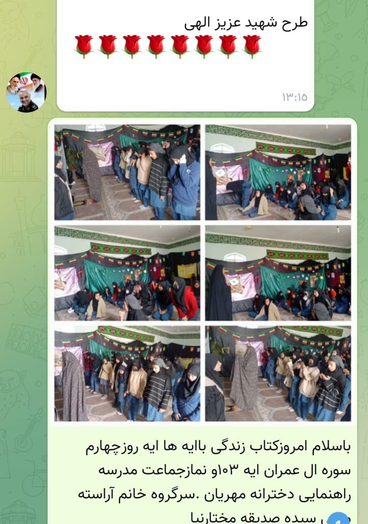 محفل ها در خانه های قرانی ومسجدومدارس همراه با روخوانی وروانخوانی در مدارس وخانه قرآنی شهیدسیدماندنی مختارنیا ازیاسوج مهریان ومدارس راهنمایی دخترانه ومسچدامامزاده حسن وحصورجوانان ونوجوانان